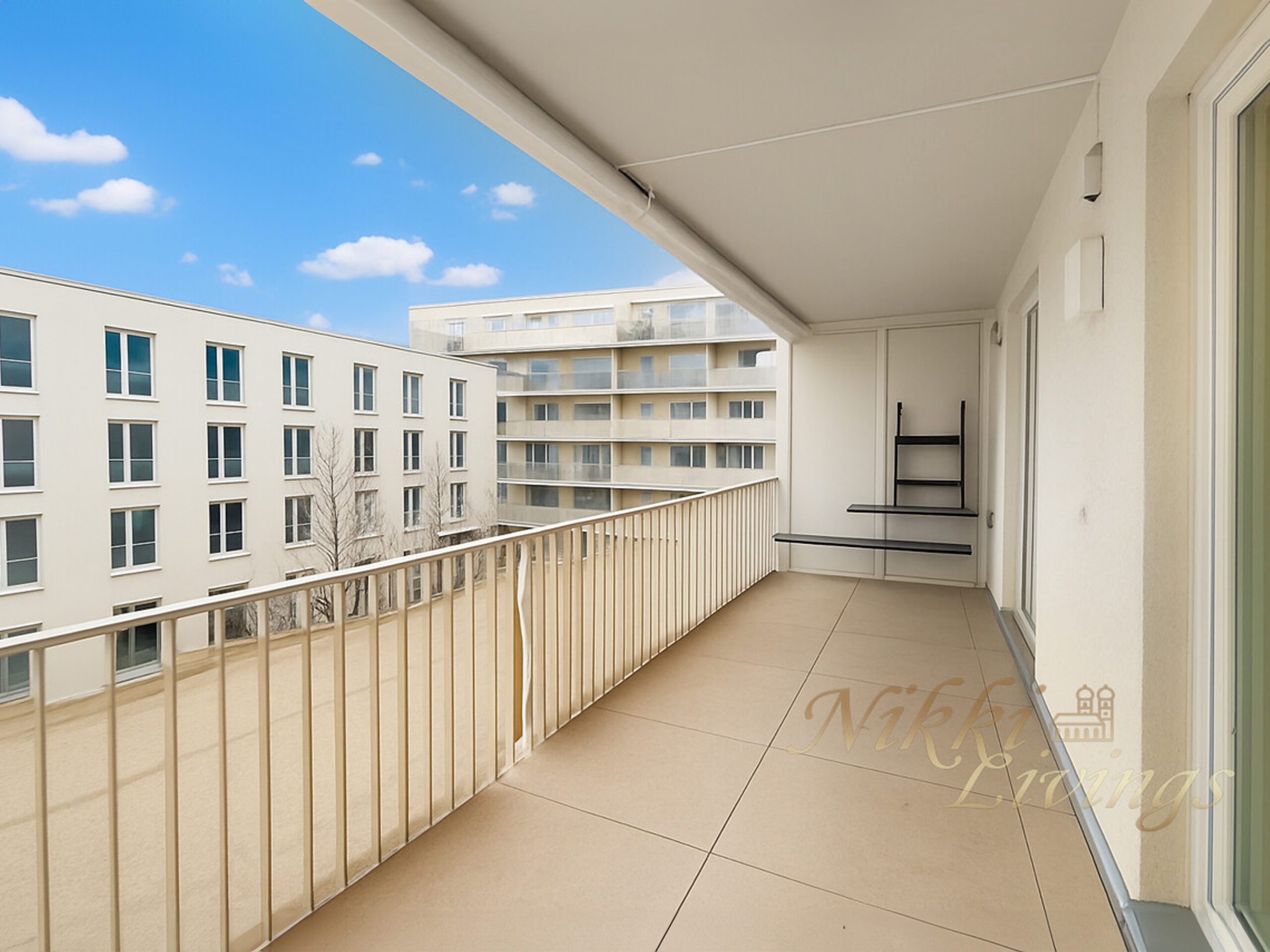 Ein besonderes Highlight ist der große Balkon mit Süd-West-Ausrichtung, der sowohl vom Wohnbereich als auch vom Schlafzimmer zugänglich ist. Hier genießen Sie viele Sonnenstunden und profitieren von einer elektrischen Markise, die an warmen Tagen angenehmen Schatten spendet.