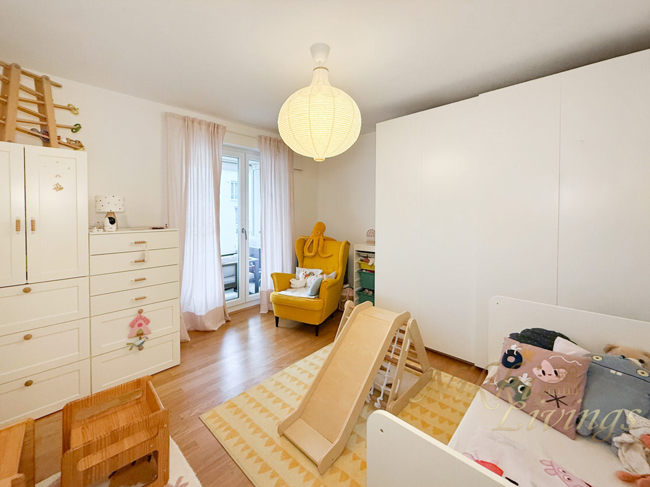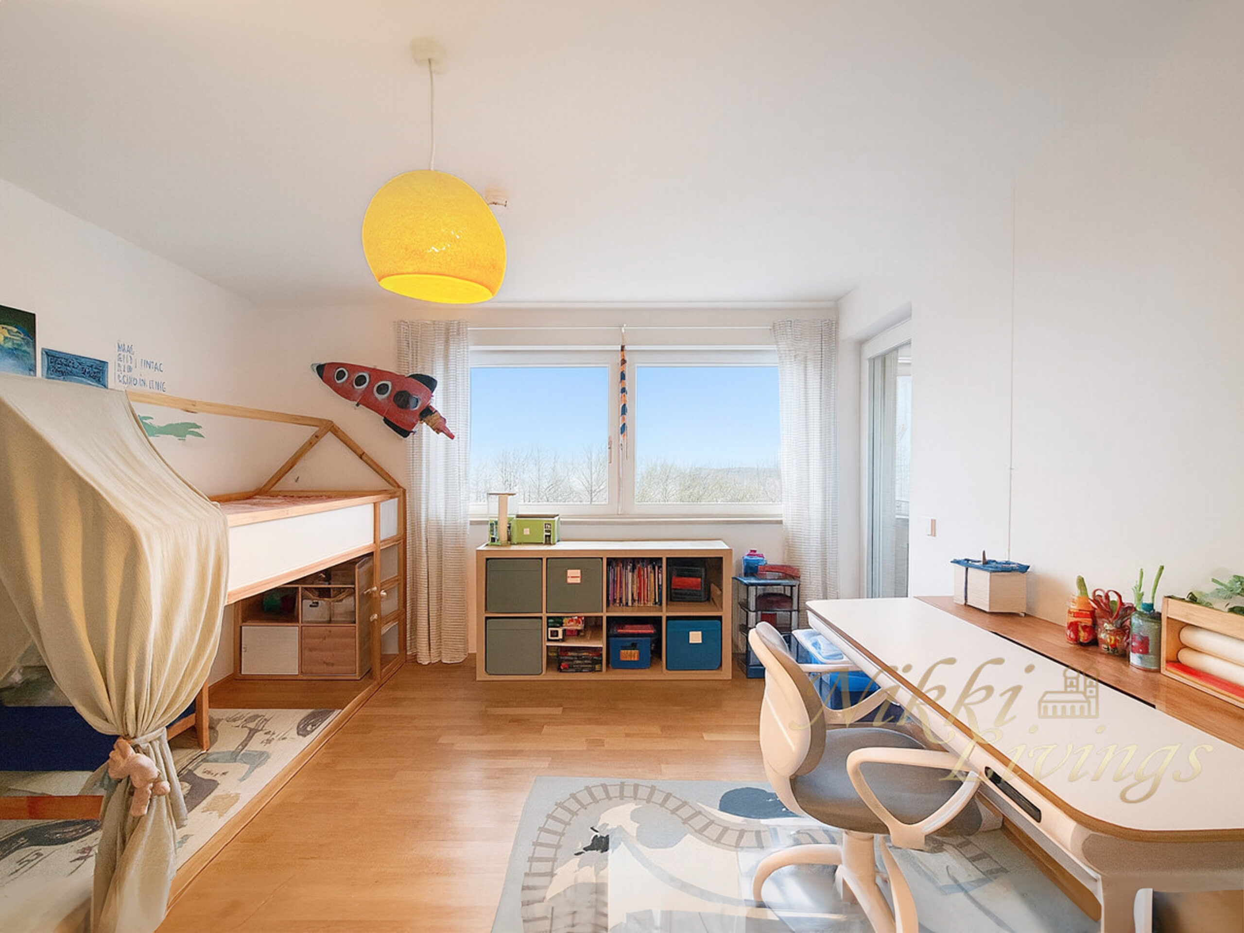 Zwei weitere Zimmer bieten flexible Nutzungsmöglichkeiten, beispielsweise als Kinderzimmer, Gästezimmer oder Homeoffice. Eines dieser Zimmer verfügt über einen eigenen Zugang zu einer verglasten Loggia mit Ostausrichtung – ein idealer Ort, um auch an kühleren Tagen entspannte Stunden zu genießen.