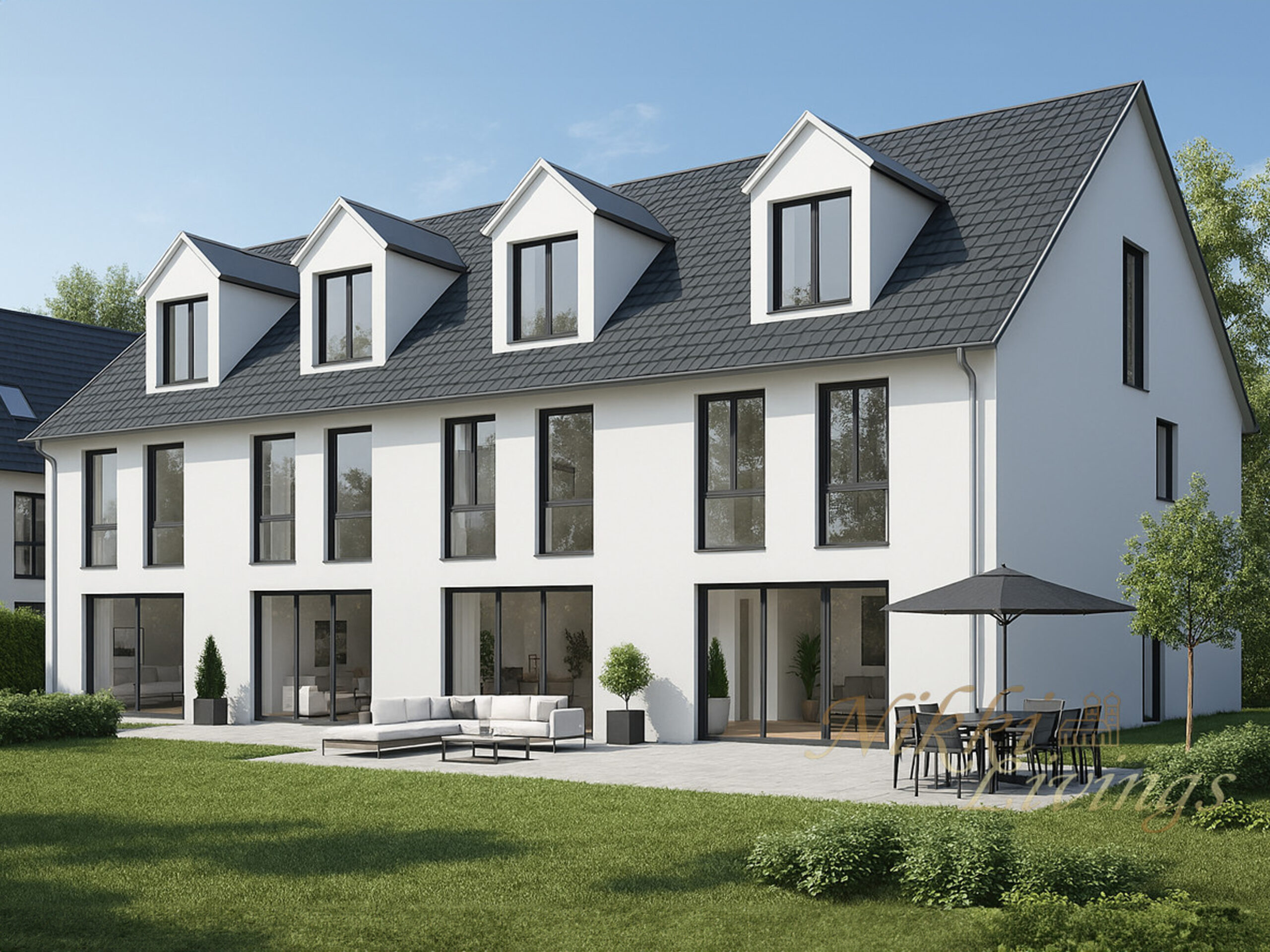 Auf dem Grundstück besteht die Möglichkeit, vier moderne Reihenhäuser zu errichten, jeweils mit einer geschätzten Wohnfläche von ca. 375 qm. Jedes Haus könnte zusätzlich über einen schönen privaten Gartenanteil verfügen, ideal für Familien, die Wert auf Freiraum und Lebensqualität legen.