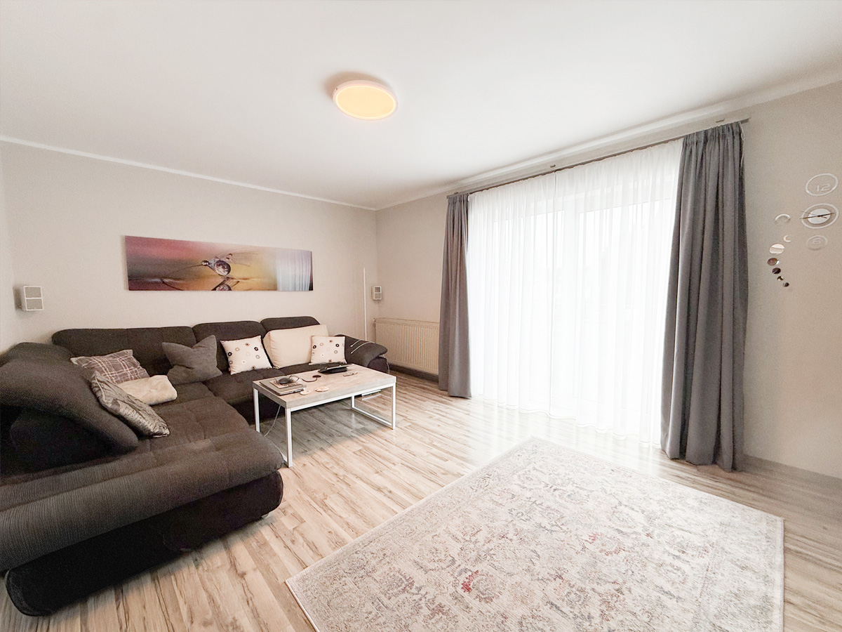 Die erste Wohneinheit befindet sich im Erdgeschoss und bietet auf einer Ebene ein durchdachtes Raumkonzept. Neben zwei Schlafzimmern und einer separaten Küche verfügt diese Wohnung über ein Badezimmer mit Badewanne sowie ein helles Wohnzimmer. Ein besonderes Highlight ist der direkte Zugang vom Wohnzimmer auf die Terrasse mit optimaler Westausrichtung.