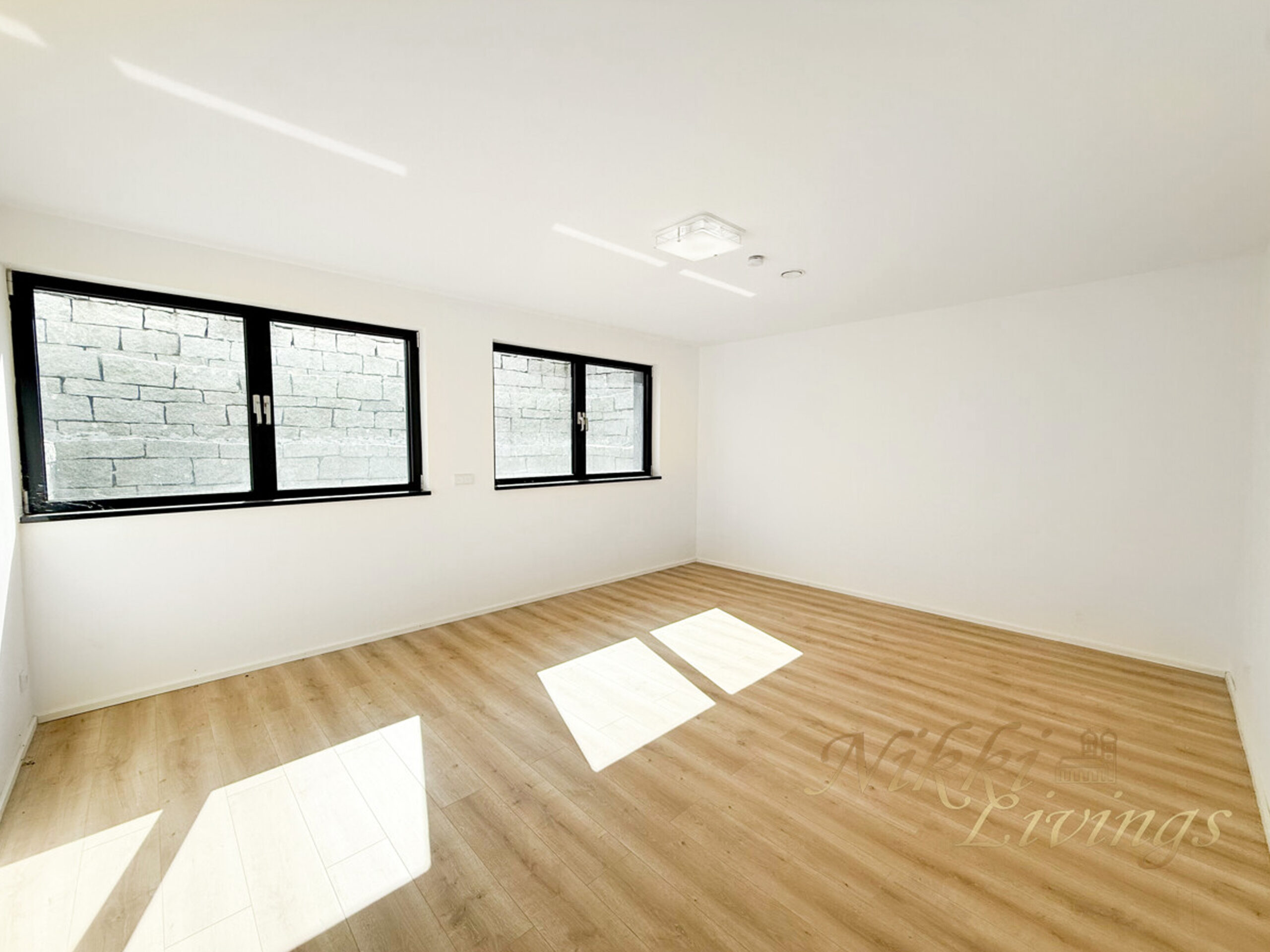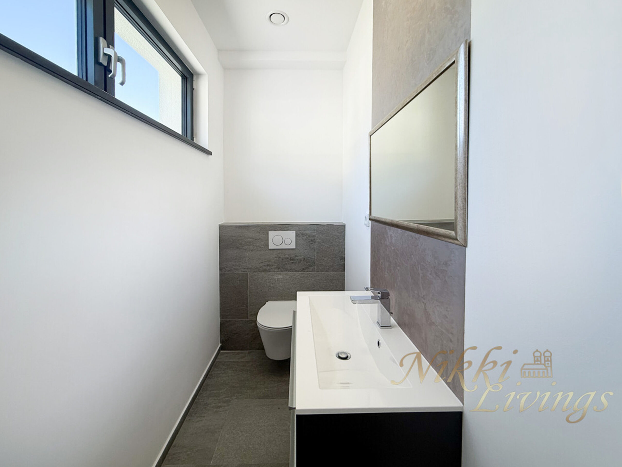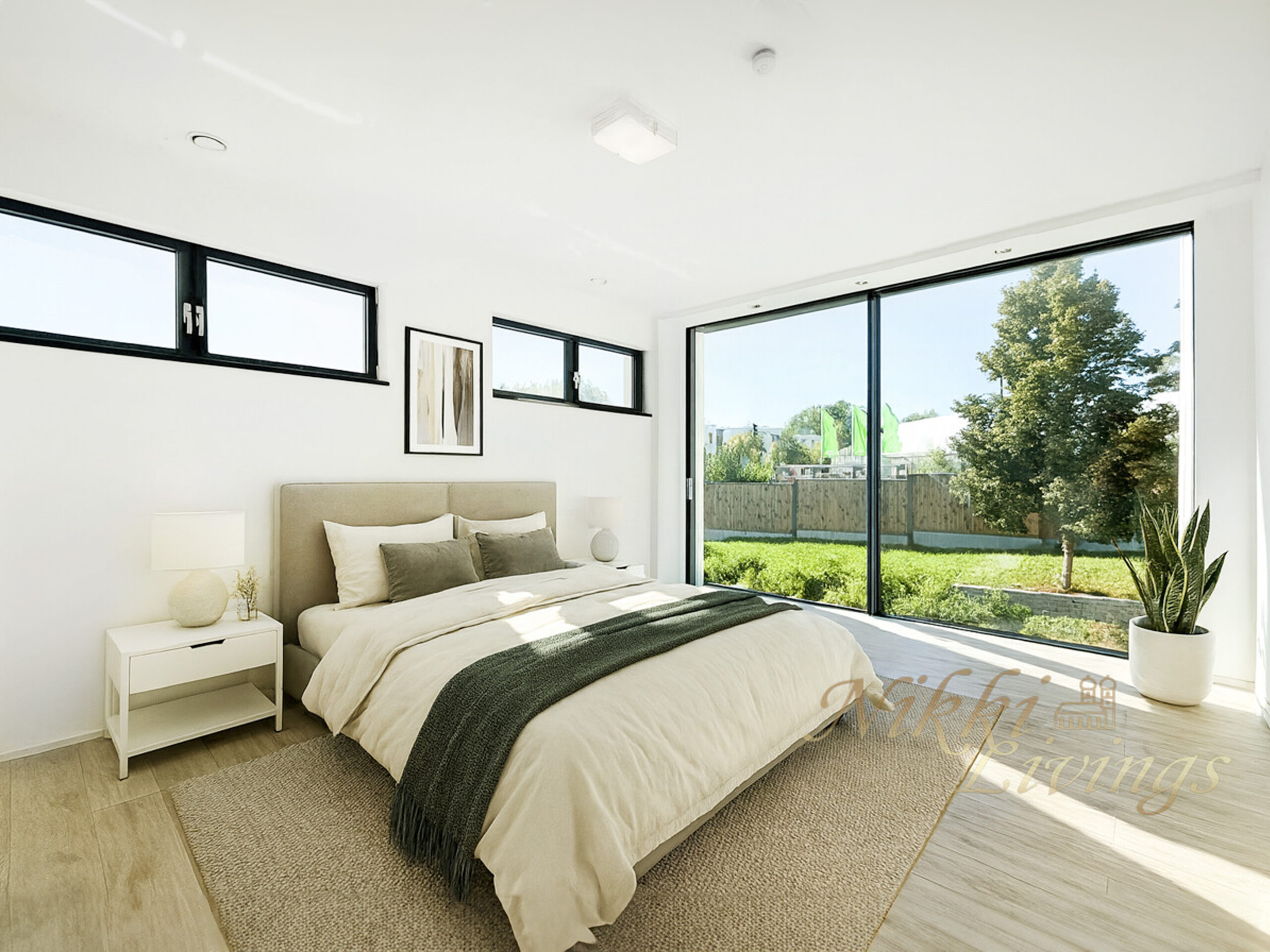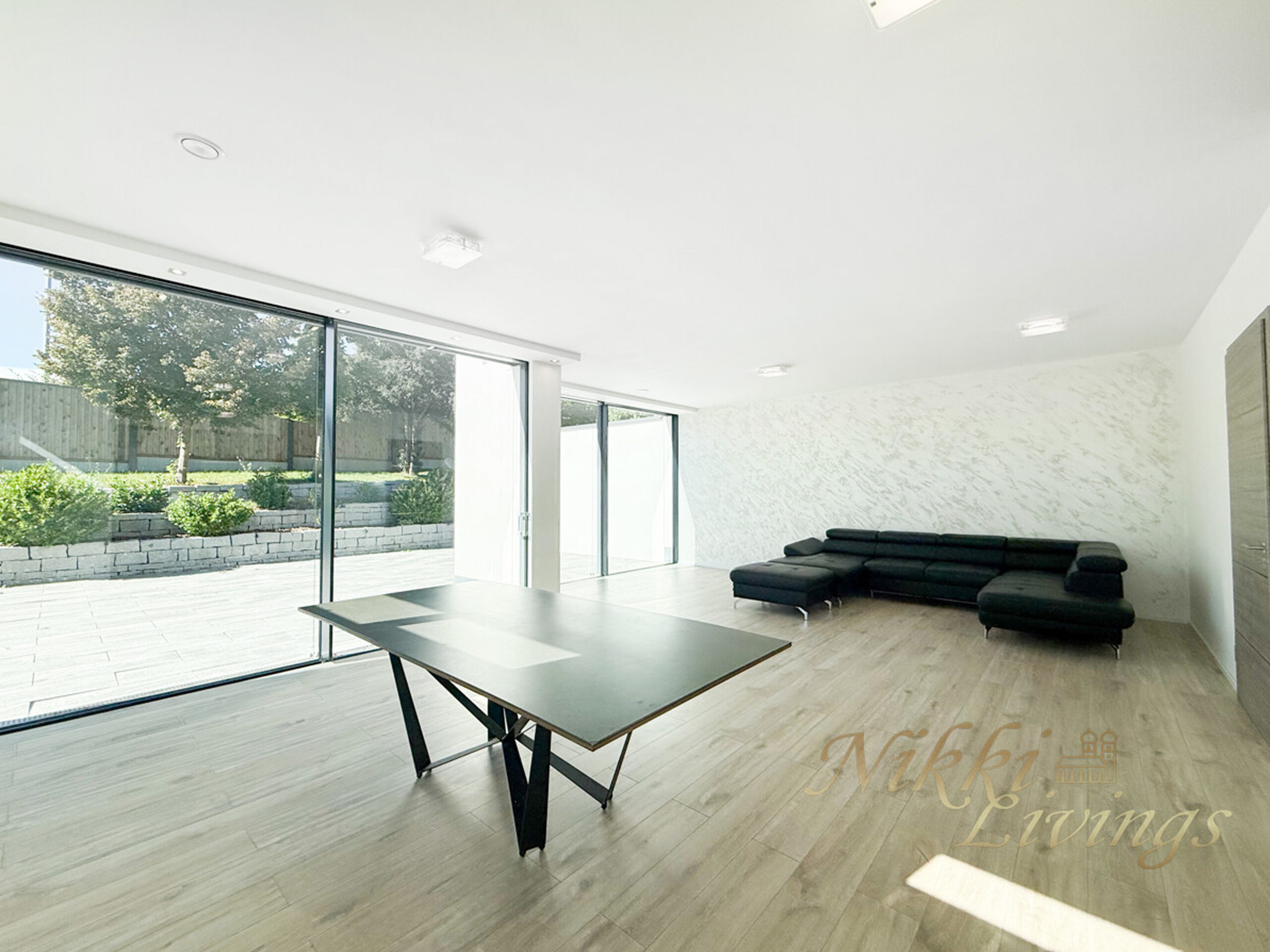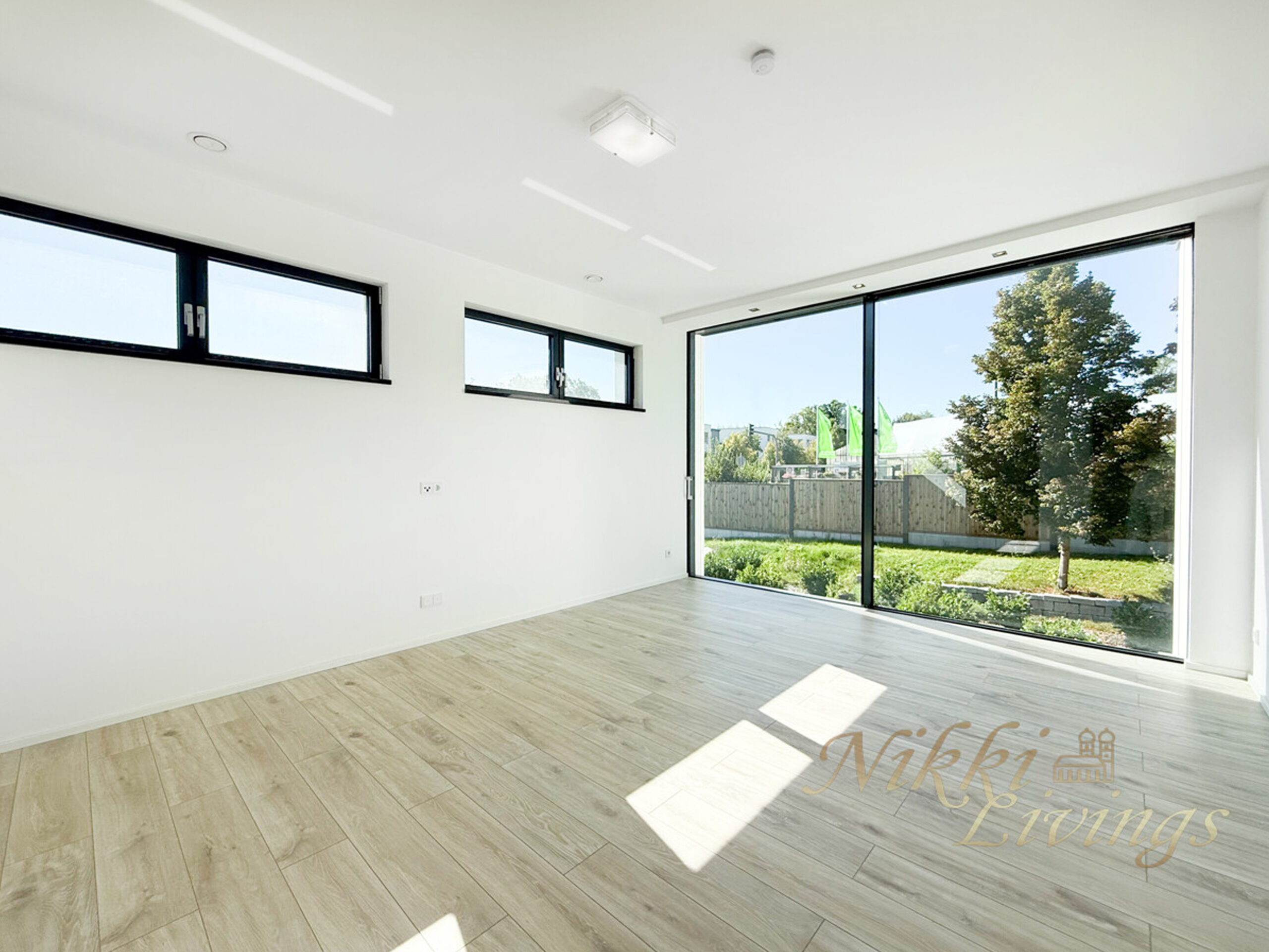 Beim Betreten dieser eindrucksvollen Doppelhaushälfte gelangt man in einen großzügigen und einladenden Flur, der sofort einen Vorgeschmack auf das elegante Wohnambiente vermittelt. Ein paar Schritte weiter befindet sich ein großes, lichtdurchflutetes Wohnzimmer, das durch rahmenlose Aluminium-Isolier-Schiebefenster einen traumhaften Blick in den gepflegten Garten ermöglicht und gleichzeitig ein modernes, offenes Wohngefühl schafft. Direkt angrenzend befindet sich die gut geschnittene Einbauküche, die mit hochwertigen Elektrogeräten ausgestattet ist. Im Erdgeschoss befindet sich außerdem ein separates Gäste-WC, das den Komfort dieser Etage abrundet und sich besonders praktisch im Alltag wie auch bei Besuch erweist.